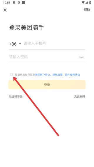 3、在切换到密码登录页面后,需要先点击方框按钮勾选表示同意协议。