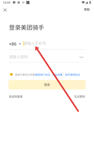 4、在勾选好同意按钮后,点击输入框依次输入手机号和密码,即可完成登录操作。