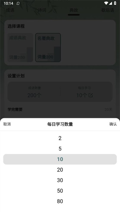 2、拥有学习的日历,直观的查看到自己学习成语的进度和每天学习成语的情况;