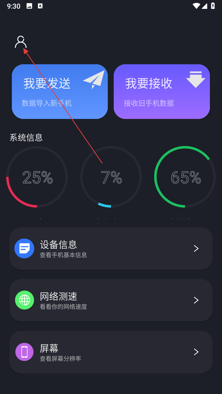 1、打开隔空投送软件,点击界面左上角的人形头像图标,进入个人相关页面。