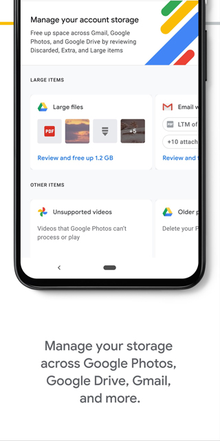 谷歌One软件是由谷歌公司旗下研发的一款进行云端储存的工具,利用该文件管理实现手机中的各种文件内容的储存服务支持,利用云端处理方式能大大节省了手机的内存使用空间,帮助各位快速处理文件内容,并将一些重要文件自动备份,如果遇到设备的损坏或者丢失,也可以通过该功能快速的实现内容查找和还原功能,让重要的文件不会丢失损坏,维护了重要的设备数据信息,且能快速的下载恢复数据使用非常可靠。