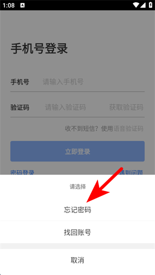 2、在弹出的选项中,我们需要点击忘记密码的这个选项框。