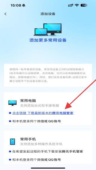 4、进入添加设备的界面内,点击链接下载后即可添加电脑设备。