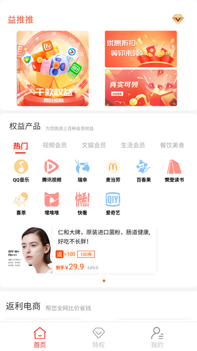 益推推是一款十分好用的手机购物类软件,是一个专门为了用户进行购买商品的软件,为用户提供了许许多多丰富的商品类型,让用户可以随时满足自己的购买需求,平台提供了最新的潮流商品,高品质和低价格让用户眼前一亮,还有精彩的优惠活动和购物返利的优势可以进行购物。