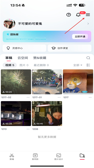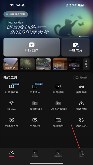 1、打开剪映,点击底部导航栏的我的选项,进入个人中心页面。