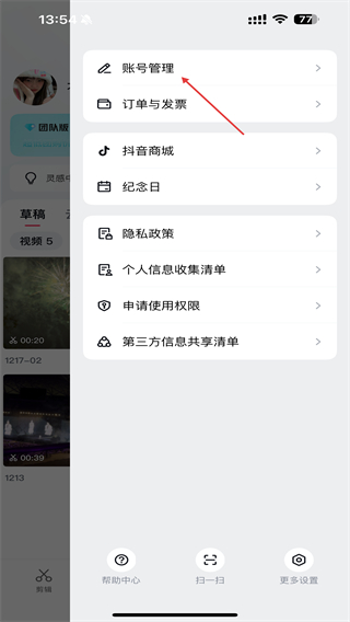 3、在展开的菜单中,选择账号管理选项,进入账号相关设置界面。