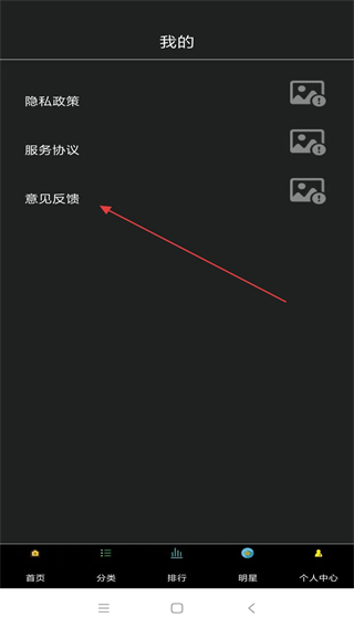 2、进入我的页面内,用户需点击意见反馈的功能按钮。