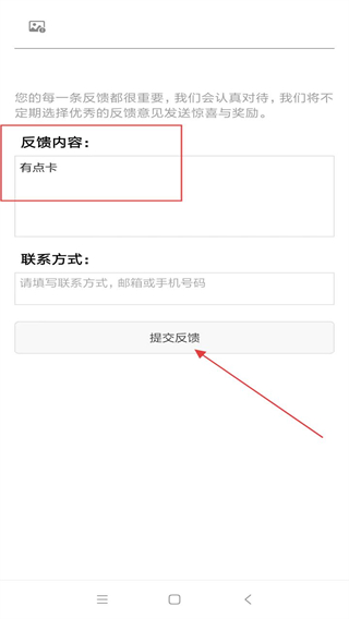 3、进入反馈的页面内,输入反馈内容,再点击提交反馈即可。