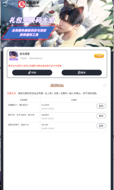 恋与深空礼包兑换码大全是专为恋与深空游戏制作的兑换码工具,我们在获得最新的兑换码时,可以快速的进入到软件里面,来进行兑换奖励,奖励的种类是非常的多的,领取后可以快速的登陆游戏来使用,帮助我们完成任务。