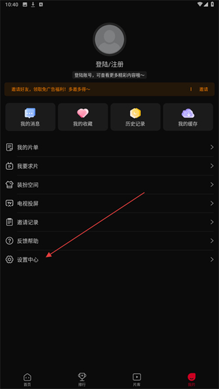 2、进入个人主页内,点击下方设置中心的功能按钮。