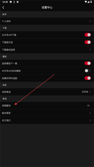 3、进入设置中心的界面内,找到并点击清理缓存的按钮。
