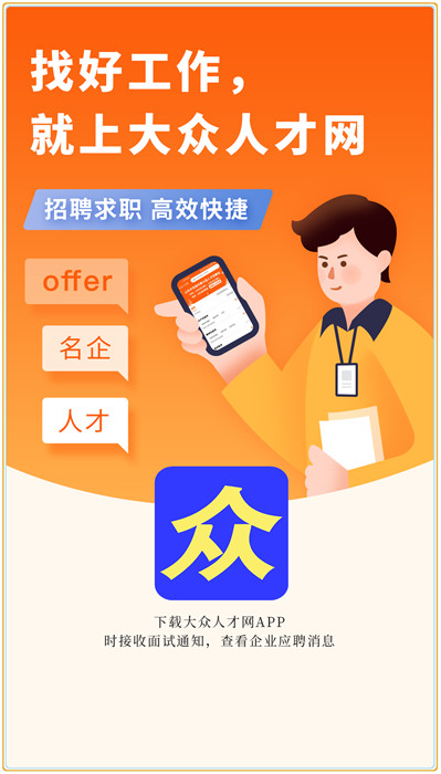 大众人才网app是一款十分好用的商务办公类软件,是一个专门为了用户进行应聘工作的软件,为用户提供了许许多多丰富的招聘信息,让用户可以随时满足自己的求职需求,来软件上面最新的招聘信息一键进行了解,智能的搜索快速的匹配到适合的岗位,宗旨是追求卓越和服务大众。