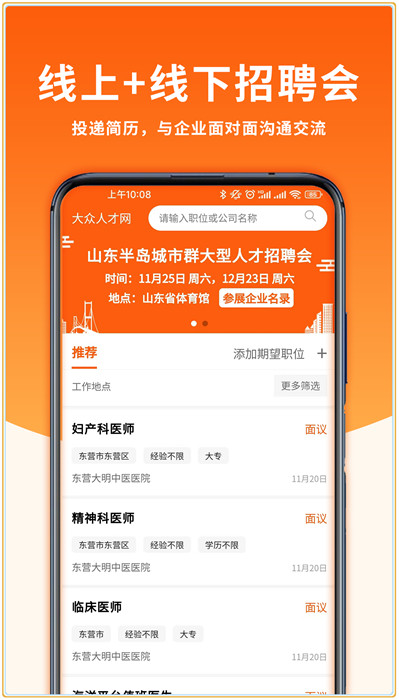 大众人才网app是一款优质实用的求职招聘的应用软件,通过这款软件用户可以随时随地的进行寻找自己想要寻找的工作,提供了十分丰富的工作内容,用户可以随时轻松地进行工作应聘,是一款专门为了山东的用户们打造的一站式求职招聘的平台。