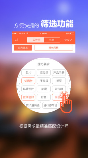 优图优印是一款提供设计、提供优质印刷的软件,在这里你可以找到最好的设计师,与之交流,让你的工作效率大幅度提升,网上在线查看设计师作品,有需要的用户欢迎下载!
