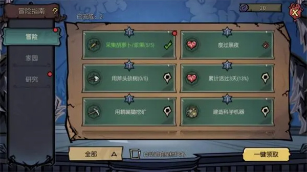 4. 冒险指南可以最多同时追踪3个冒险任务,在主界面直接看到任务进度