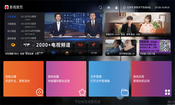 4、电视直播:提供了电视直播服务,有助于我们观看到各种频道直播节目;