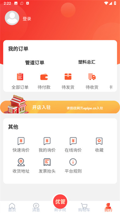 优管网app是一款优质实用的购买管道的应用软件,通过这款软件用户可以随时随地的进行购买自己需要购买的管道,提供了十分丰富的服务项目,用户可以随时轻松地进行管道购买,是一款专门为了管道行业打造的综合服务平台。