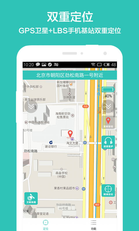 3.双重定位:GPS卫星精准定位,LBS手机基站实时定位。