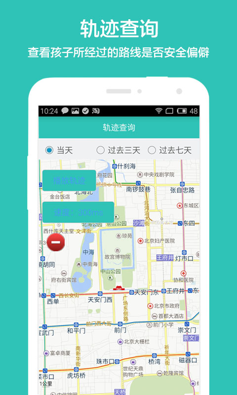 4.轨迹查询:查询孩子过去所经过的路线是否存在安全隐患。