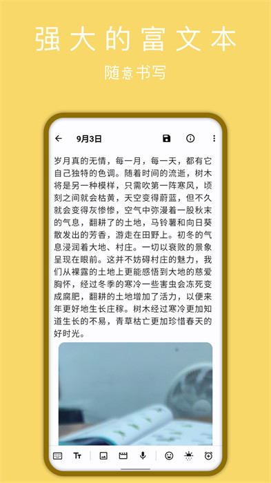 天悦日记app是一个界面简洁且没有太多复杂功能的日记记录工具,利用该工具可以记录自己的日常也可以当成备忘录进行记录,在记录中更是可以支持多种不同的方式记录,无论是语音还是视频或者传统的文字都可以进行记录,且在内容记录上可以穿插图片、音频等内容,方便大家在内容的记录上得到更详细的内容记录,让日记的记录上可以有更鲜活的记忆,从中可以感受到不一样的时光记录功能。