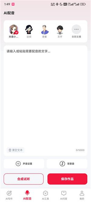 c、ai配音,如果部分文章或者视频需要配音,可直接在线选择配音素材;