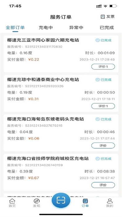 4、费用明细:提供了充电费用明细,清楚了解充电所产生的费用。