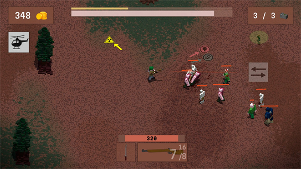 游戏的画面运用像素的风格来塑造的,适合多种不同喜欢的玩家来进行游玩,尽情的发挥自己的技术来完成挑战,解锁新的武器来进行战斗,不同的武器对敌人的伤害都是不同的,要根据僵尸的种类来进行选择,对其造成多倍伤害,完成自己的挑战,解锁新的模式来游玩,不同的模式有新的规则需要我们注意的,成为最后的僵尸杀手。