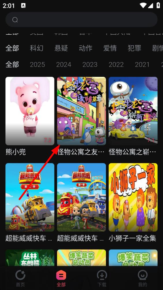 2、在全部页面里,查找带有限免标识的影片,像怪物公寓之友情篇章这类标注限免的影片。