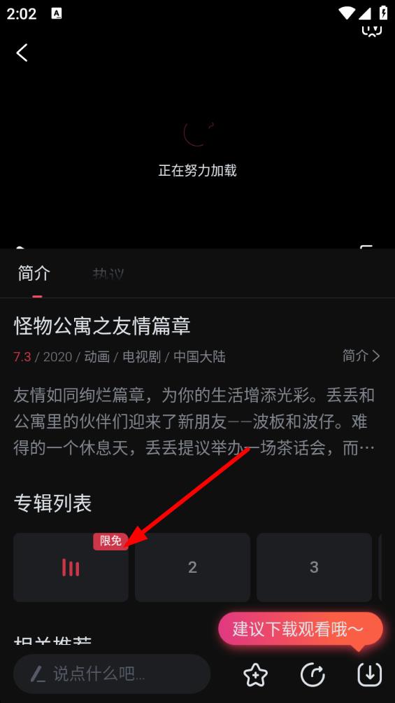 3、点击带有限免标识的影片,进入播放页面,在专辑列表中点击对应集数,即可免费播放观看。