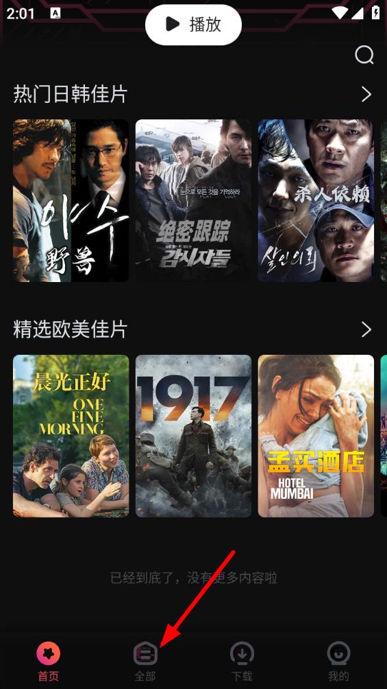 1、打开柿子电影app,进入首页,点击底部导航栏中的全部选项,浏览各类影片资源。
