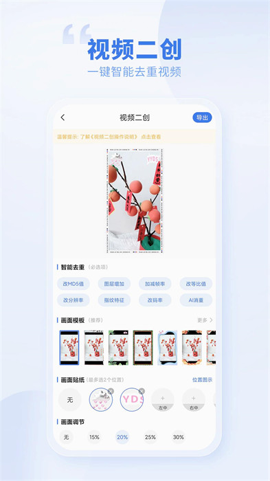 1、将对原视频各种属性的元素进行二次去重消重的创作处理,避免内容会重复;