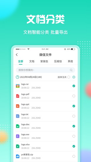 微文件助手软件是一款可以实现更便捷化的导出微信中的各种文件,支持图片、应用、视频、文档等多种格式类型的软件导出到本地保存,并且在对于微信聊天中的聊天记录和语音保存时会更加方便,为各位提供了一个更加专业的文件备份和导出的工具,同时在文件的导出时,可以利用批量管理功能方便各位进行快速的导出,为用户们在对于文件的管理也提供了智能化的管理服务,相信如今该工具可以为各位带来更专业且快速的导出功能应用。