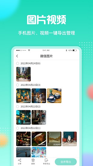 4、微信的语音保存十分让各位头疼的一件事情,该应用提供了合并导出备份;