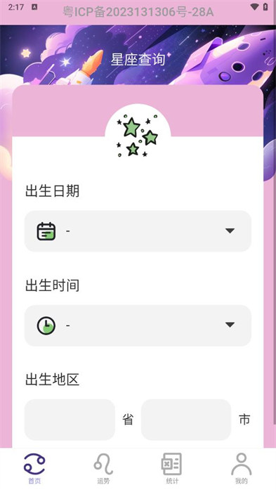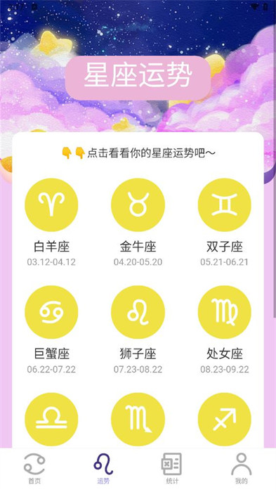 ①、星座运势,可输入自己的生活信息,了解到更多星座方面常识;