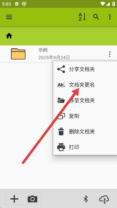 2、在弹出的菜单列表中,点击文档夹更名选项。