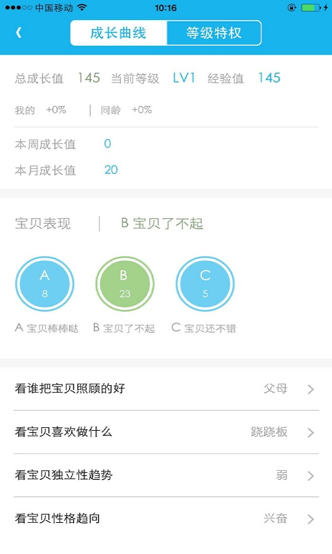 2、娱乐化、生活化、指导化的功能,记录、分析宝贝成长;