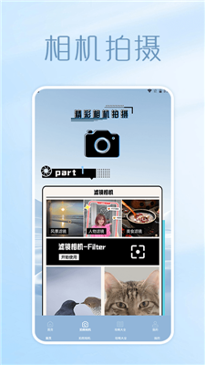 b、海量滤镜,专门给用户带来超多的滤镜以及贴纸素材,打造更个性化的效果;