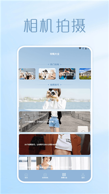 a、拍摄技巧,有专业的板块带给用户更多拍摄技巧,任何时间都可打开学习;