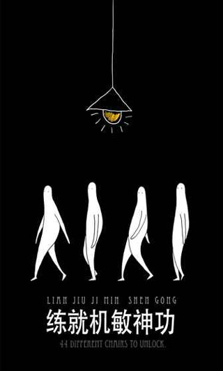 44把椅子游戏是一款以黑色幽默为主休闲益智类的游戏,在整体采用的更是以简洁的风格方式为主,为各位提供了更加丰富的故事情节,享受不一样的特色休闲玩法,在整个画面中以黑色为基调的背景,上方一个小小的灯光照亮着44把椅子,随着挑战椅子会逐渐减少,需要在停止的时间下及时的抢到位置坐下,只有连续抢到最后一把椅子才算成功,所以在挑战上十分考验玩家的反应能力,一起来感受这个类似于抢板凳玩法的游戏吧。