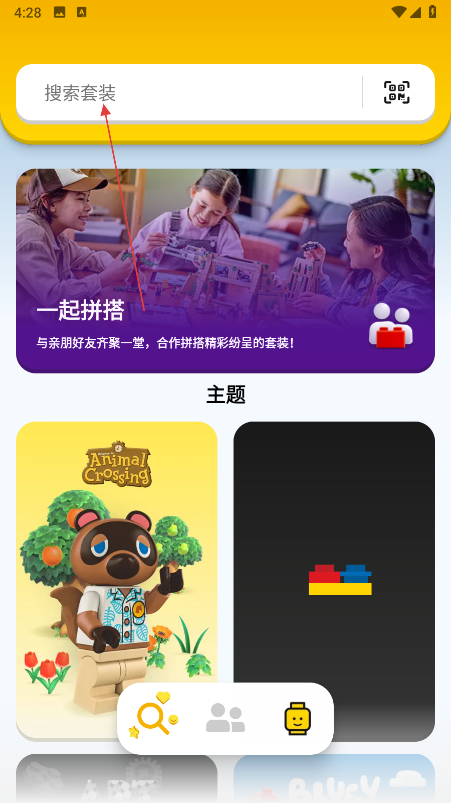 1、打开乐高拼搭指引应用,点击页面顶部的搜索框,输入想要一起拼搭的套装关键词。