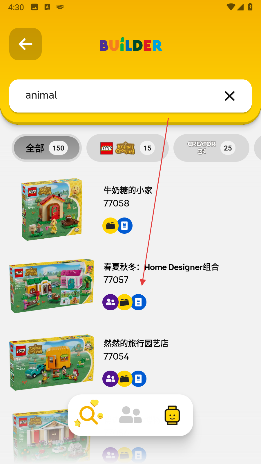 2、在搜索结果中,找到目标乐高套装,点击该套装进入详情页面。
