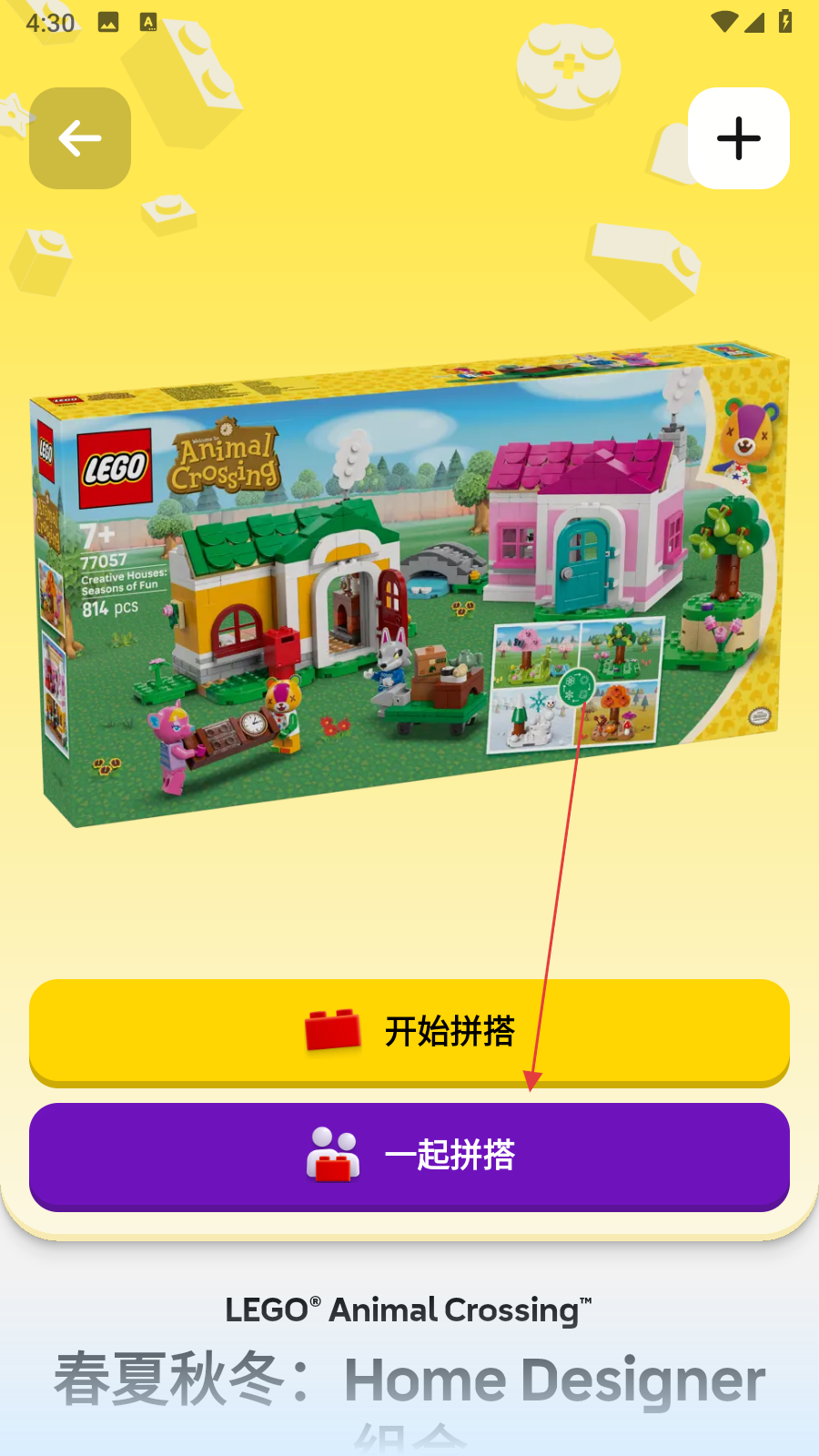 3、在套装详情页面,点击一起拼搭按钮,进入拼搭准备界面。