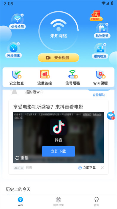 2、实时的查看自己的网络速度情况,平台还有安全监测的功能,可以放心;