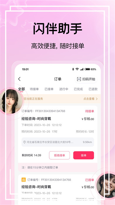 4、极致的接单体验,在服务期间可以随时联系平台或者一键预警来保障到安全。