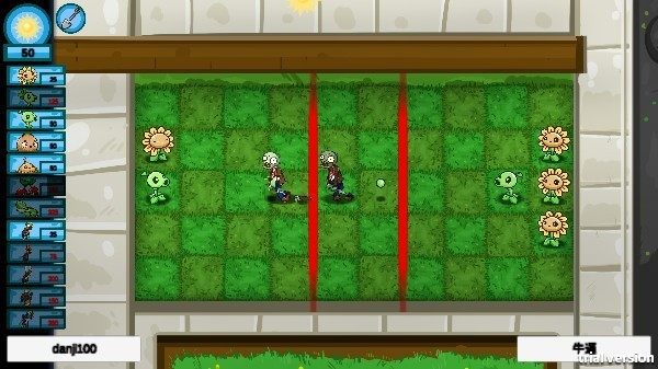 2、需要在自己的战斗区域和僵尸进行战斗,同时也能够看到对手的情况;