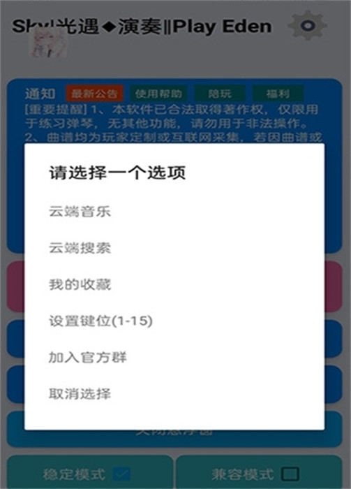③、实时更新,所有曲谱都能选择并弹奏,并能不定期的进行更新曲谱资源;