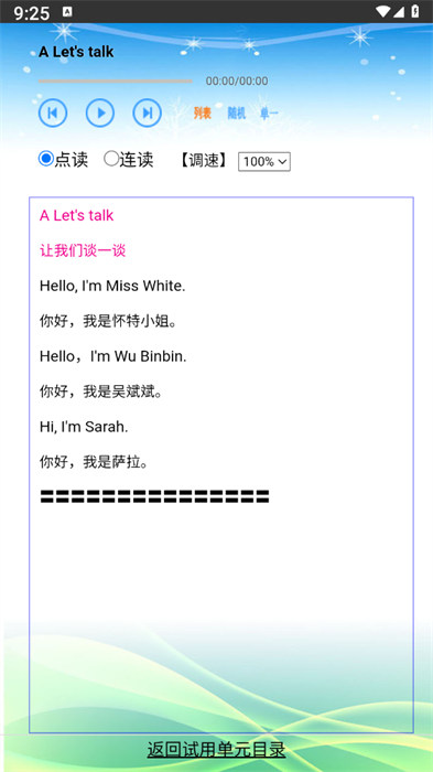 单词点读通是一款连接网络的学习知识的应用软件,通过这款软件用户可以随时随地的进行学习自己想要学习的知识,提供了十分丰富的知识内容,用户可以随时轻松地进行知识学习,是一款广受用户们欢迎的十分好用的实用工具。