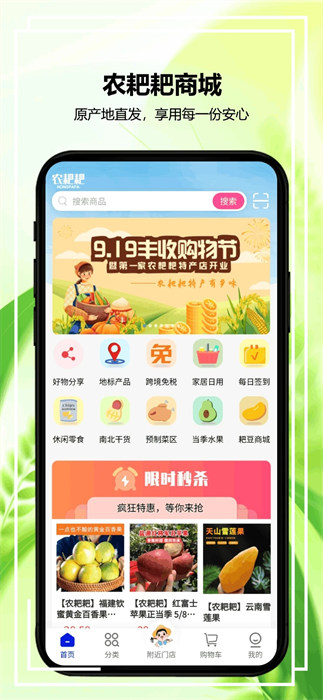 农耙耙是一款十分好用的手机购物类软件,是一个专门为了用户进行购买商品的软件,为用户提供了许许多多丰富的商品类型,让用户可以随时满足自己的购买需求,专注于农特商品的在线购物的商城,来软件里面海量的特色农产品源头直供,品类十分的丰富而且价格还很实惠,还可以签到。