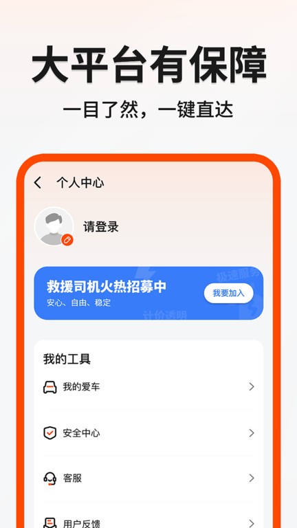 5、平台中所有的救援人员都有专业知识,具备车辆维修和专业救援服务;