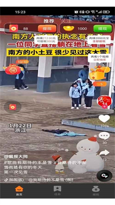 2、实现了玩转视频和赚零花钱的梦想,汇聚了各种各样的短视频内容可以观看;